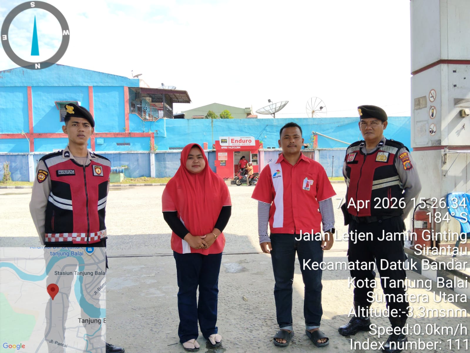 sentralberita|Tanjungbalai~Personel Sat Samapta Polres Tanjung Balai kembali menyambangi sejumlah Stasiun Pengisian Bahan Bakar Umum (SPBU) di wilayah Kota Tanjung Balai pada Selasa (07/04). Langkah ini dilakukan untuk memastikan aktivitas pengisian BBM berjalan lancar dan mencegah terjadinya gangguan keamanan serta ketertiban masyarakat (Kamtibmas).