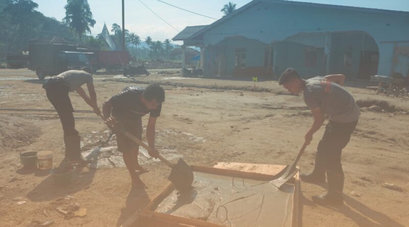 Viewssentralberita|Sipirok~ Personel Satuan Brimob Polda Sumatera Utara terus menunjukkan komitmen dalam mendukung pemulihan pascabencana banjir bandang dan tanah longsor di