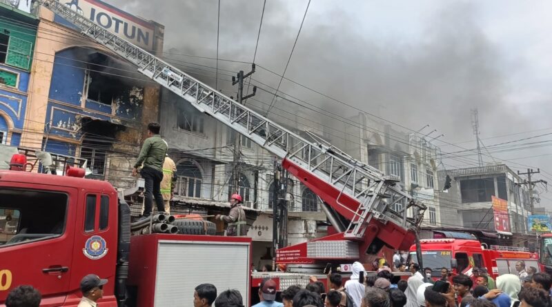 Kobaran Api di Gunung Sitoli Berhasil Dijinakkan! Sinergi Personel Brimob Polda Sumut Bersama Tim Gabungan Selamatkan Kawasan Pertokoan