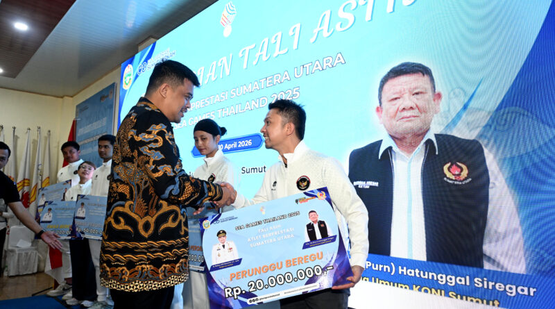Read moresentralberita | Medan ~ Gubernur Sumatera Utara (Sumut) Muhammad Bobby Afif Nasution menyerahkan tali asih kepada atlet peraih medali pada