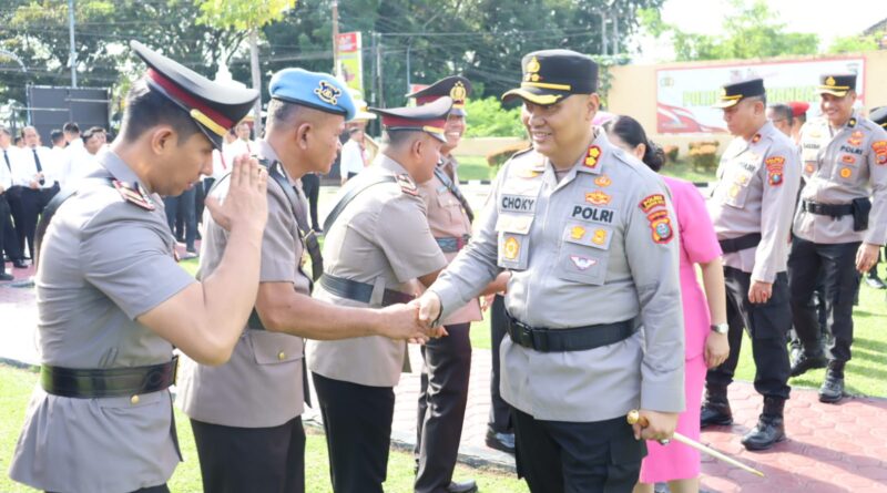 Viewssentralberita | Labuhanbatu~ Kapolres Labuhanbatu, AKBP Choky Sentosa Meliala memimpin upacara serah terima jabatan (Sertijab) sejumlah Pejabat Utama dan Kapolsek