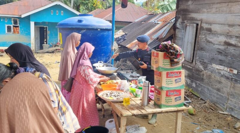 Dapur Umum dan Layanan Kesehatan Posko Brimob Polda Sumut Jadi Andalan Warga Terdampak Banjir di Batang Toru