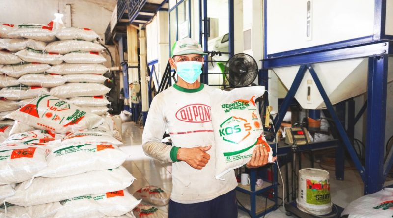 ViewsSeorang petani Desa BSI Lampung ketika menunjukkan Beras produksi PT Gapsera Sejahtera yang merupakan hasil dari pendampingan Yayasan BSMU dengan