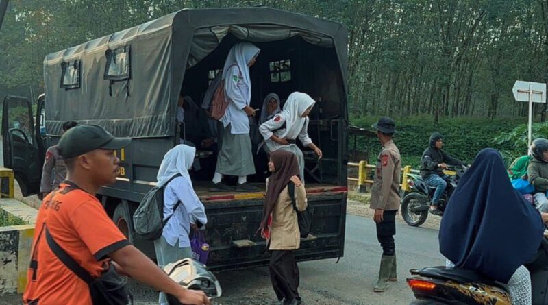 Brimob Sumut Antar Anak-Anak Desa Garoga Tetap Bersekolah di Tengah Dampak Bencana