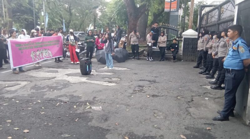Viewssentralberita|Medan ~ Puluhan elemen masyarakat yang tergabung dalam berbagai organisasi perempuan di Kota Medan menggelar aksi demonstrasi di depan gedung