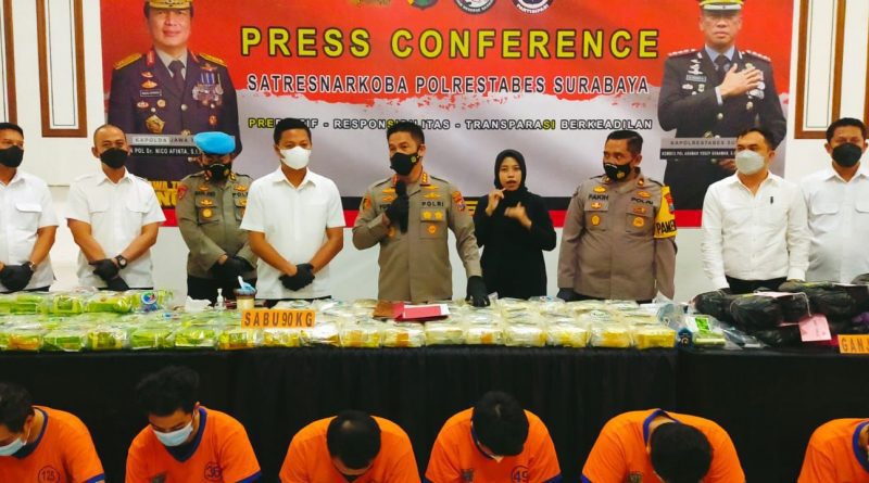Read morePolrestabes Surabaya menangkap delapan kurir dalam kasus peredaran narkotika jenis sabu dan ganja dengan barang bukti Ratusan Kilogram.(f-ist) sentralberita |