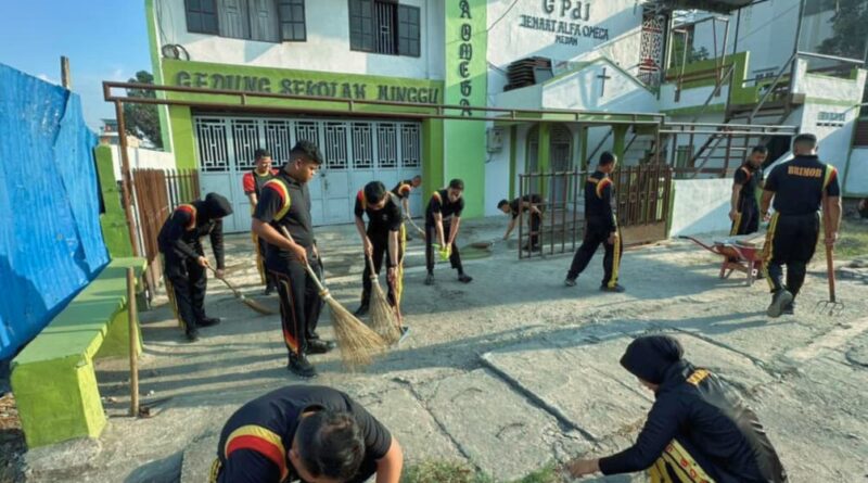 Detasemen Gegana Brimob Polda Sumut Kerja Bakti di Sekolah Minggu GPDI Alfa Omega Medan