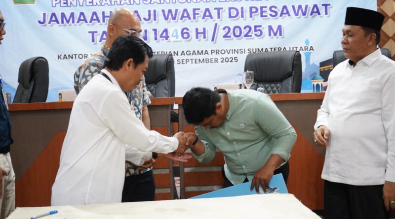 Viewssentralberita | Medan ~ Kementerian Agama dan Garuda Indonesia menunjukkan komitmen perlindungan kepada jemaah haji melalui penyerahan santunan ekstra cover