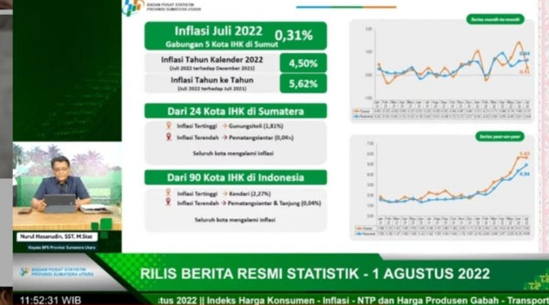 Read moresentralberita|Medan~ Pada Juli 2022, inflasi Provinsi Sumatera Utara (Gabungan lima kota, yaitu Sibolga, Pematangsiantar, Medan, Padangsidimpuan, dan Gunungsitoli) sebesar 0,31