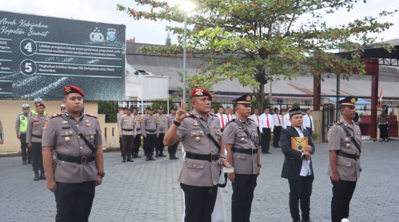 Viewssentralberita|Tanjungbalai~Polres Tanjung Balai menggelar upacara serah terima jabatan (Sertijab) untuk posisi Kasat Reskrim dan Kapolsek Sei Tualang Raso pada Senin