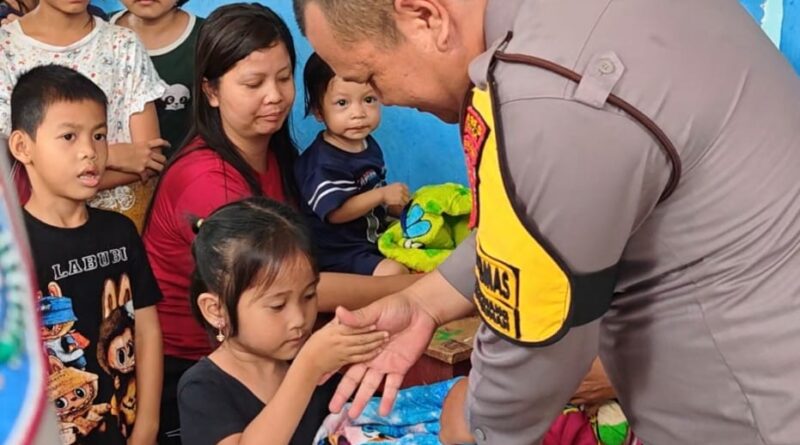 Bhabinkamtibmas Polres Sibolga Berikan Bantuan Selimut kepada Pengungsi Korban Bencana Alam