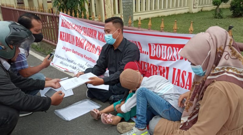 ViewsAndi datang bersama istri dan dua anaknya dengan membentangkan spanduk protes atas sikap penyidik Cyber Crime Ditreskrimsus yang tak kunjung