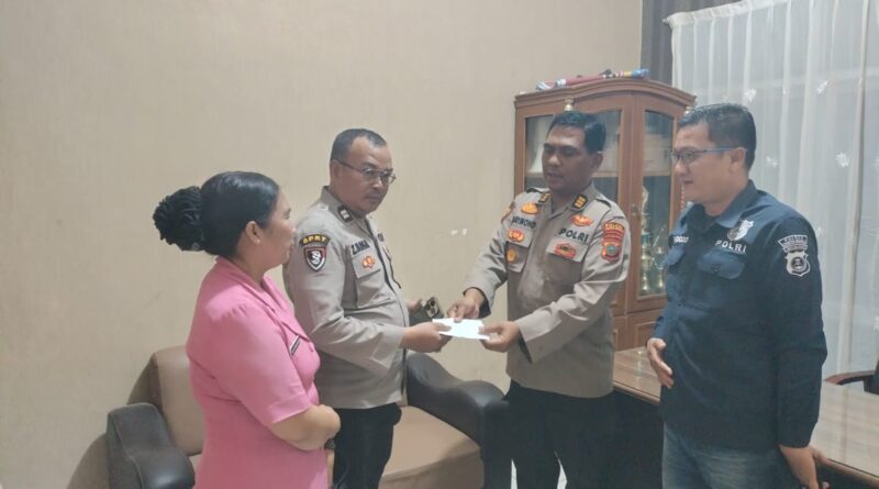 Kabag SDM Polres Pakpak Bharat Bersama Kasubsi Penmas Serahkan Tali Asih Kepada Alumni Rekan IKABHAMAS
